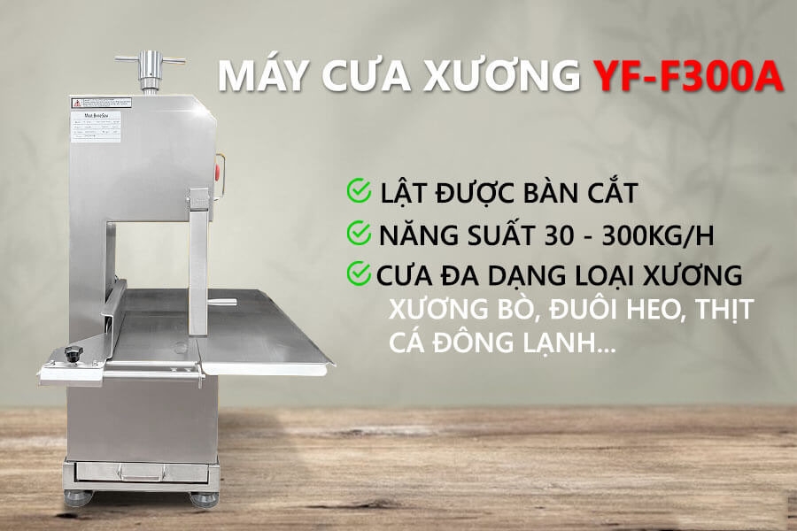 Máy cưa xương YF-F300A được thiết kế dành cho các cơ sở chế biến thực phẩm cần xử lý xương số lượng lớn mỗi ngày.